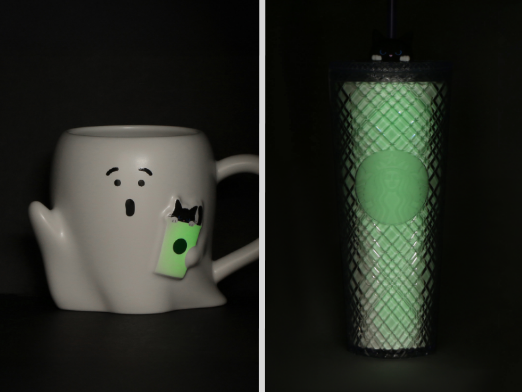 ゴーストの形をした「ハロウィン2025マグゴーストグローインザダーク355ml」は、黒猫が顔をのぞかせているカップが光ります。冷たいビバレッジがたっぷり入る「ハロウィン2025ロゴコールドカップタンブラーグローインザダーク710ml」は本体が光る仕様に。ワクワクする仕掛けのグッズで、暗闇でのひとときをお楽しみください。