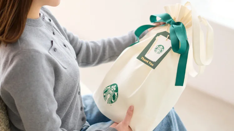 対象商品お一つから、スターバックスオリジナルの包装紙、のしを、無料でお付けいたします。