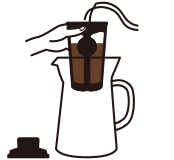 • 1.アイスコーヒーの場合はお湯の量を半分にします。