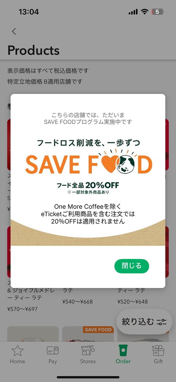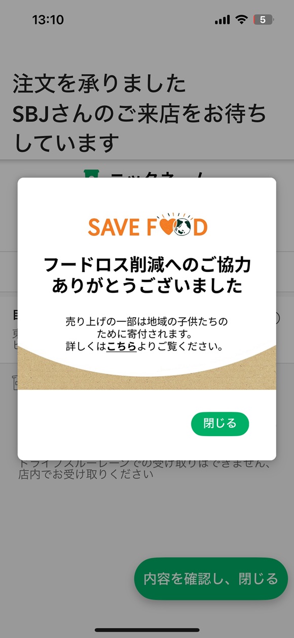 ※店頭レジでのご注文における「SAVE FOOD」開始と、Mobile Order & Payにおける「SAVE FOOD」開始には時間差が生じる可能性があります。