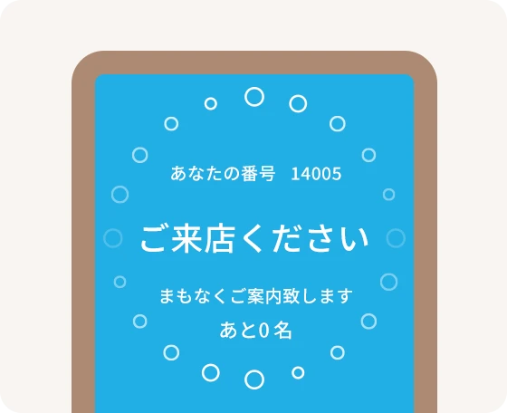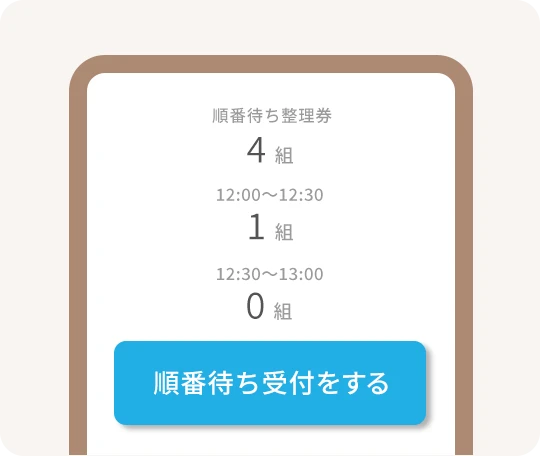 - 順番待ち整理券でのご案内をしていない場合は、整理券無しでご入店いただけます。