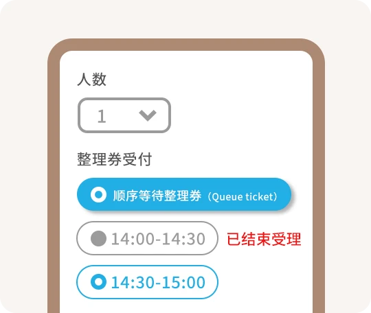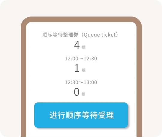 - 整理券仅用于受理您来店的顺序,并不能为您预留座位。