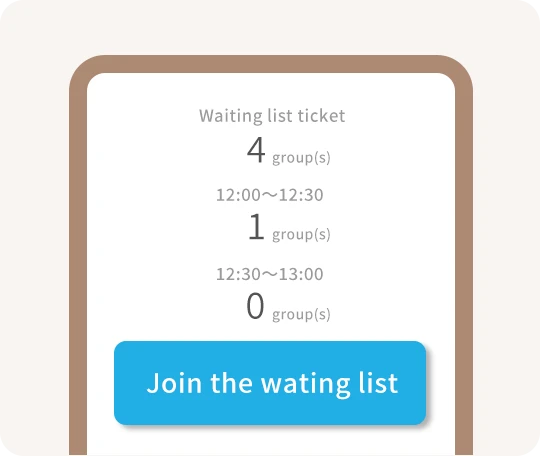 事前に来店時間を指定することで、スムーズにご入店いただける整理券です。土・日・祝日や年末年始など、混雑予想日の当日朝7時から受付します。