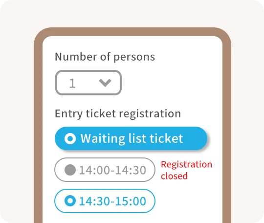 This numbered entry ticket allows you to specify your arrival time in advance for smoother entry. The ticket is accepted from 7:00 a.m. on typically busy days such as Saturdays, Sundays, national holidays, and during the New Year holiday season.