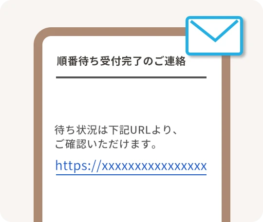 呼出メールが届いたら、「待ち状況確認URL」をタップし、表示された画面を店舗入り口で提示します。
