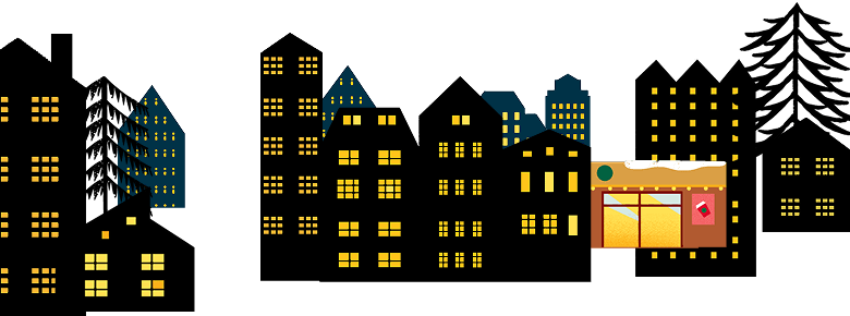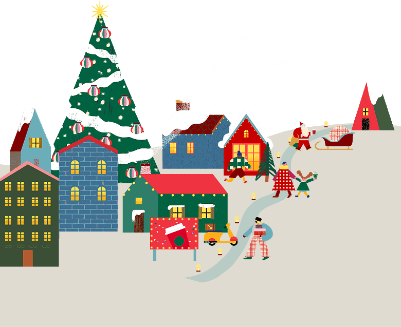 ここは、"Holiday Joyful Town"。この街の住人たちは、ホリデーの到来を盛大にお祝いして楽しんでいます。