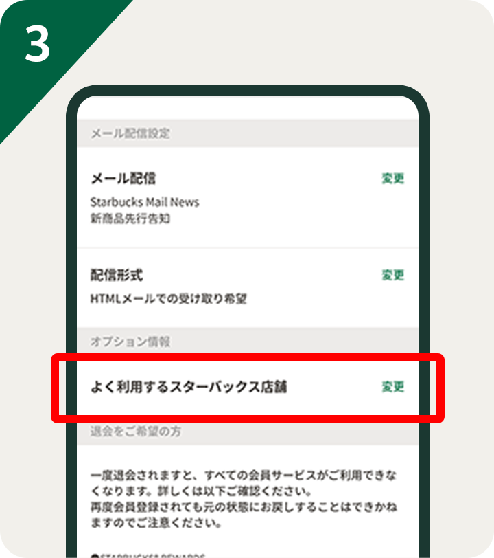 「よく利用するスターバックス店舗」の「変更」へ進む