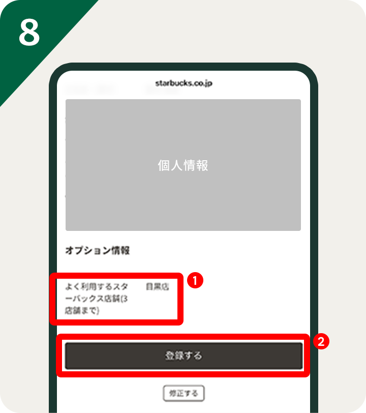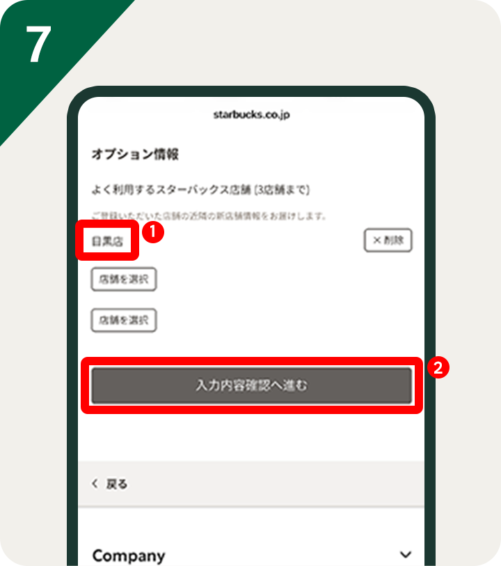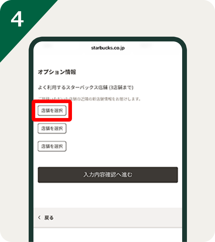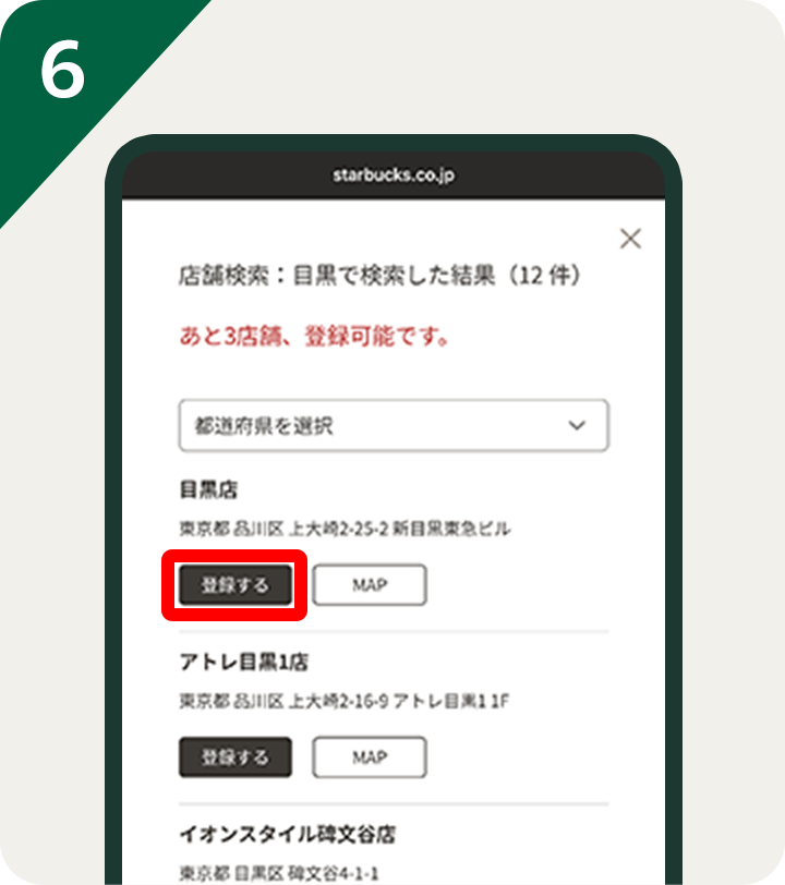 ※すでに3店舗登録済みの場合は、1店舗削除後、対象店舗の中から新たにご登録ください。(登録は最大3店舗まで)●すでにスターバックス® リワード会員のお客様