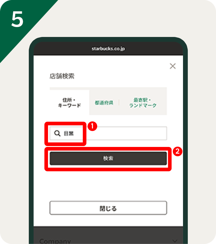 住所やキーワードを入力して、店舗検索を行う