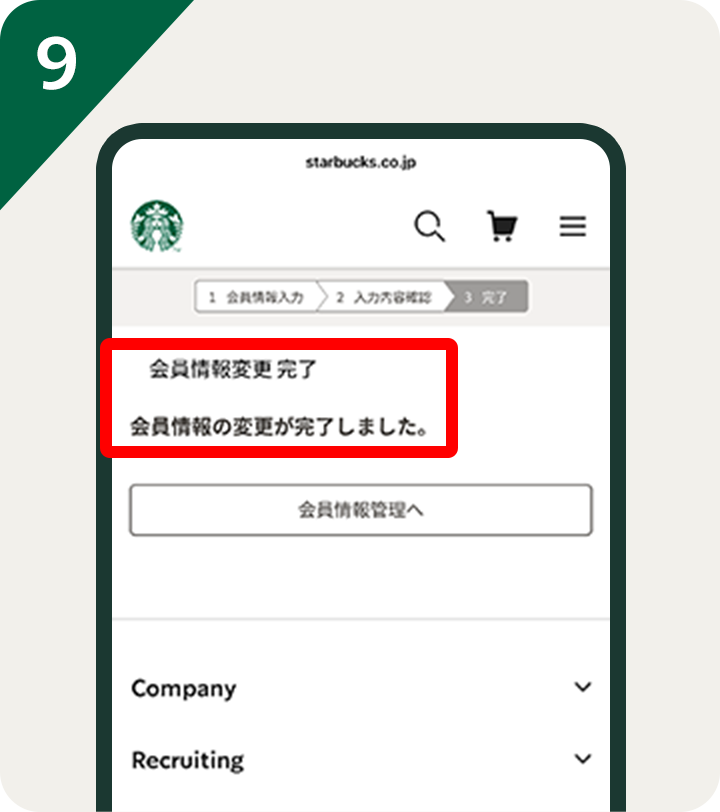 「会員情報の変更が完了しました」の表示が確認できたら完了