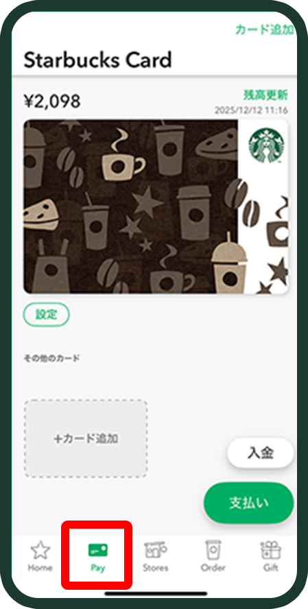 公式アプリ左下の「Pay」をタップ。
